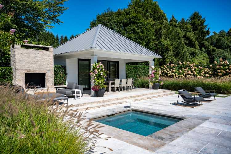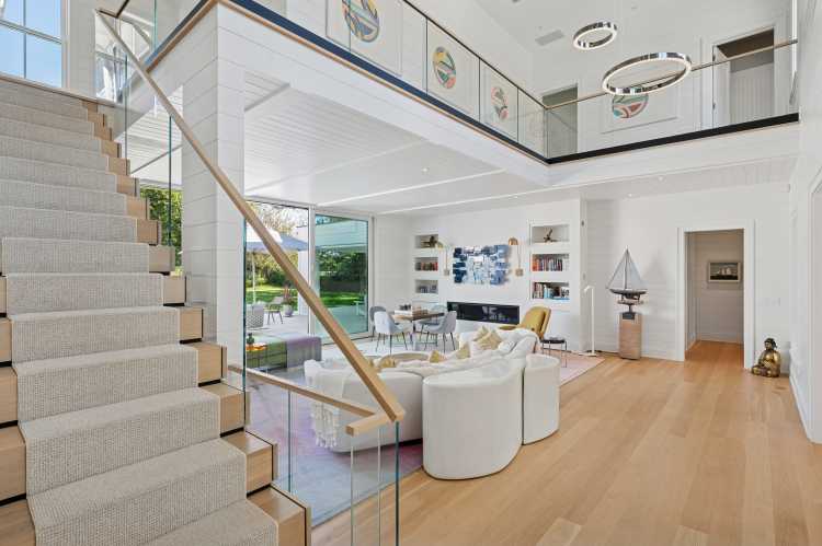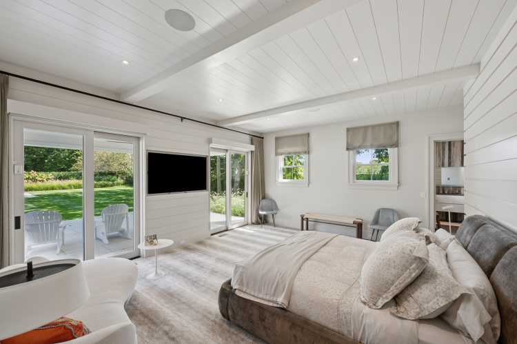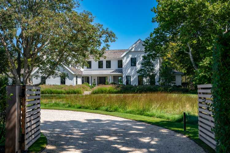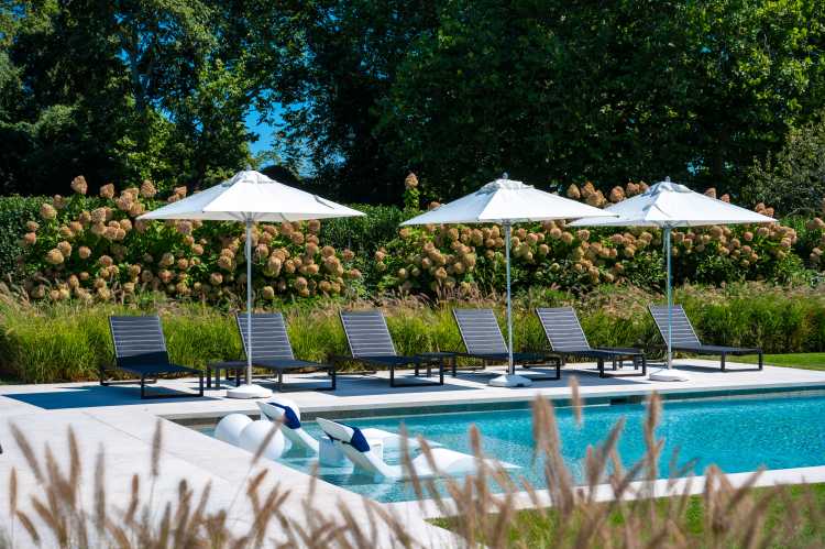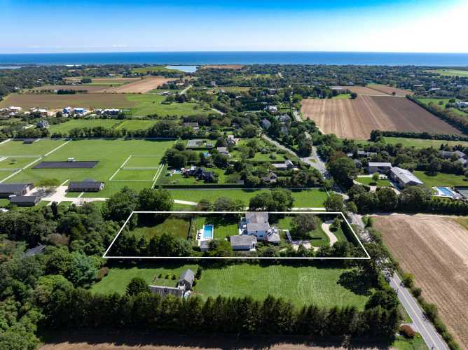 Set on nearly two acres just 1.5 acres from the Atlantic Ocean and bordered by a horse farm, the resort-like compound’s amenities include a heated gunite pool with a Baja sunshelf and a 10-person hot tub, a well-appointed pool house, an outdoor fireplace and kitchen, as well as padel court, all cultivated with landscaping by the renowned firm