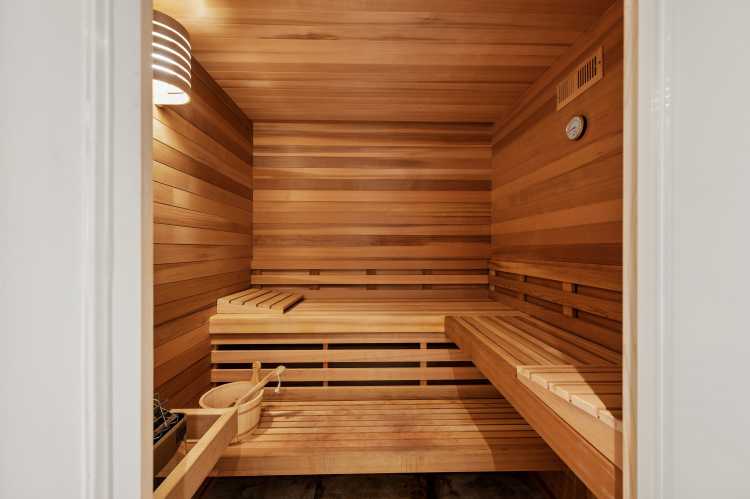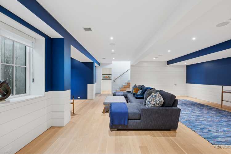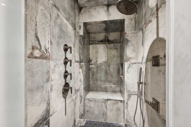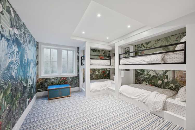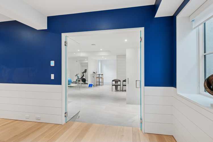 Down on the lower level, there is 2,830 square feet of space with two more bedrooms, one of which is a kid-friendly bunk room, and two more bathrooms. There is a large media/recreation room, a workshop and a gym, with access to a marble-lined steam room and dry sauna. There is also plenty of storage.