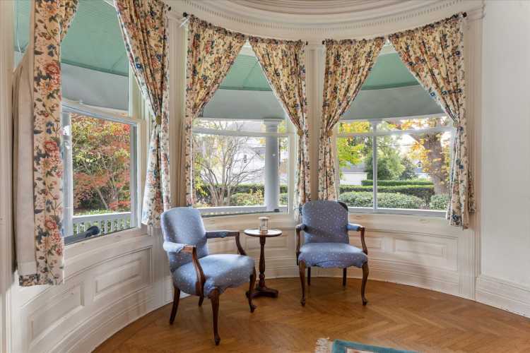 It has retained period architectural details, such as soaring ceilings, wood floors, original trims, leaded windows and formal rooms.