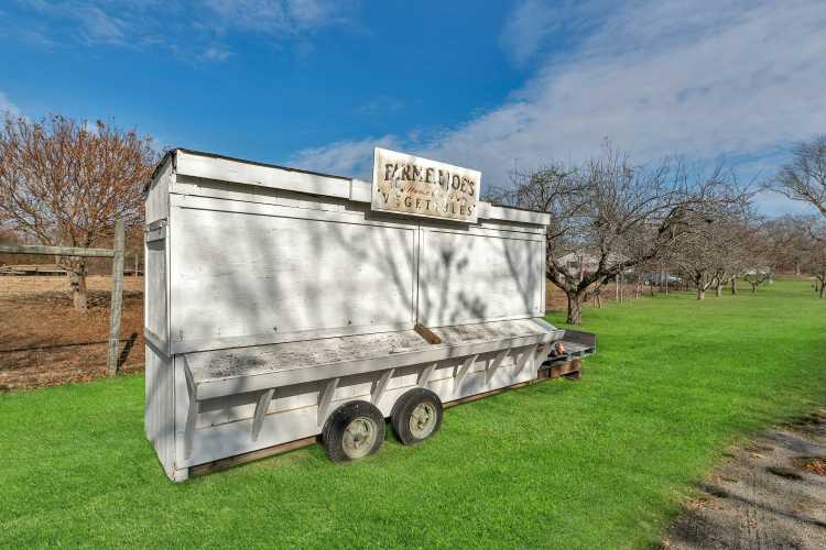 “A large, established two-thirds-acre vegetable garden and an active roadside farm stand underscore the property’s agricultural potential, while a natural watering hole — rising and falling with the rains — enhances the bucolic setting,” the listing explains.