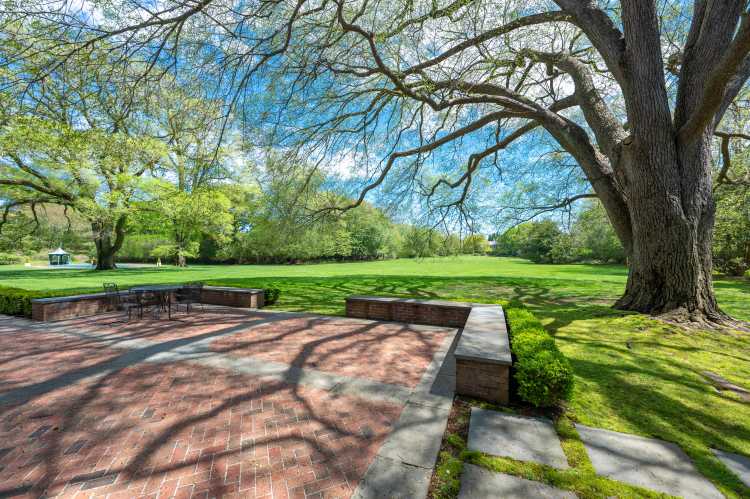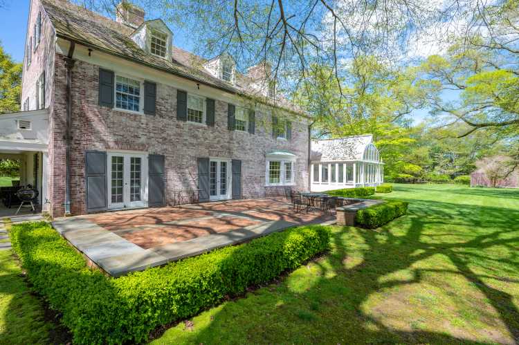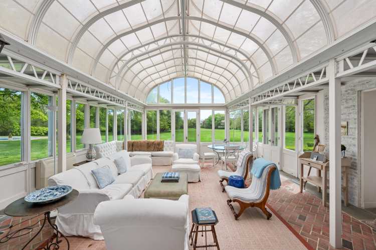 There is a 6,000-square-foot home on the 5.24-acre property at 42 Hither Lane. Known as Holly Hall, it is a stately 1930s residence, “which blends historic charm with modern comforts,” the listing agent says. The home offers six bedrooms, plus two staff quarters. Expansive porches and terraces provide easy indoor-outdoor living. There is also a radiant sunroom overlooking the rolling lawns and lush gardens. There is also a privately situated pool and plenty of room to build.