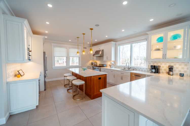 Classic wainscoting, custom crown molding, ceiling fans, and oak hardwood floors can be found throughout. There are also nine-foot ceilings, radiant heated floors and smart home technologies with remote management.
