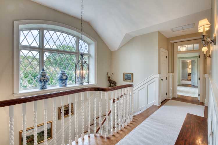 There are a total of six bedrooms, five bathrooms and three half baths, with most found on the second level.