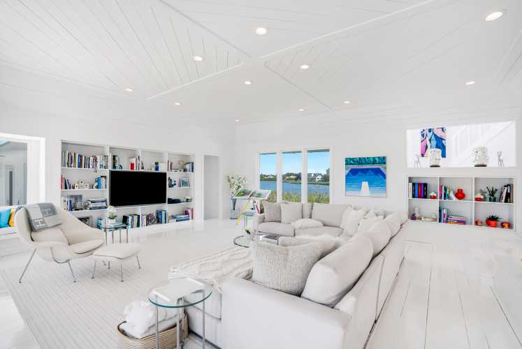 Designed by Futterman Architecture, the 5,500-square-foot home features four bedrooms and four and a half baths, plus water views from nearly every room.