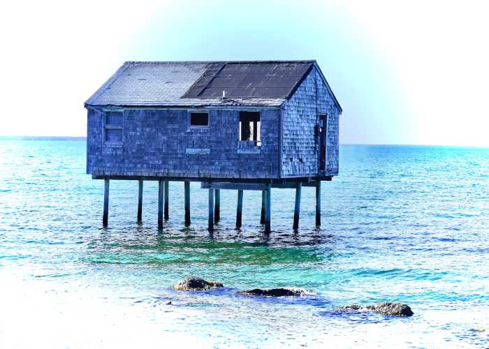 The weathered beach shack had once been a home, but had been abandoned as Lazy Point’s northern shoreline eroded. Fully surrounded by water since about 2004, it became an attraction for locals and tourists alike, who captured the house in various seasons and light, all amazed that the pilings continued to stand.