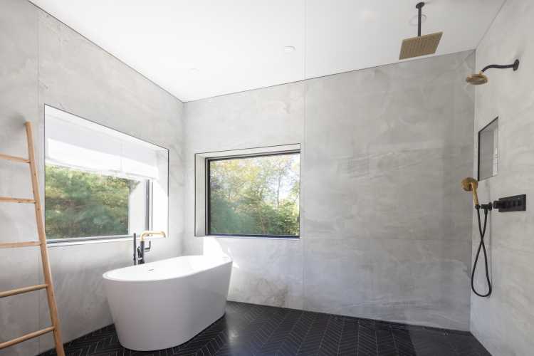 The 3,000-square-foot house at 480 Eastwood Drive blends modern elegance with comfort, according to the listing. “Constructed with steel beam framing and enhanced by an insulated basement, oversized Andersen windows and sliders, and beautiful mahogany decking, the residence offers exceptional quality throughout,” the description says.