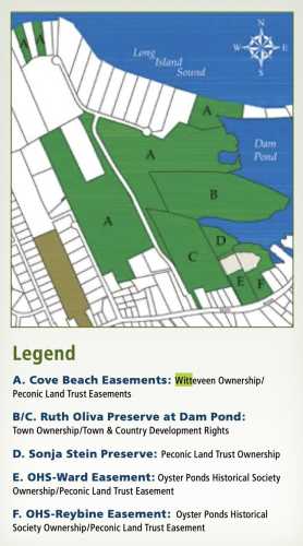 His donation added to the Ruth Oliva Preserve at Dam Pond, now a collection of 118 acres, jointly managed with the county and town preserve. The pond and its surrounds are a prime source of fin and shellfish, and habitat for birds and wildlife, some of which are on New York State’s list of rare and endangered species, according to the Peconic Land Trust. “The conservation easement gifts protected rare maritime red cedar forests and oak hickory forests, as well as a significant amount of waterfront: 650 feet on Long Island and 450 feet of Dam Pond,” the land trust said in a history of the property in 2012.