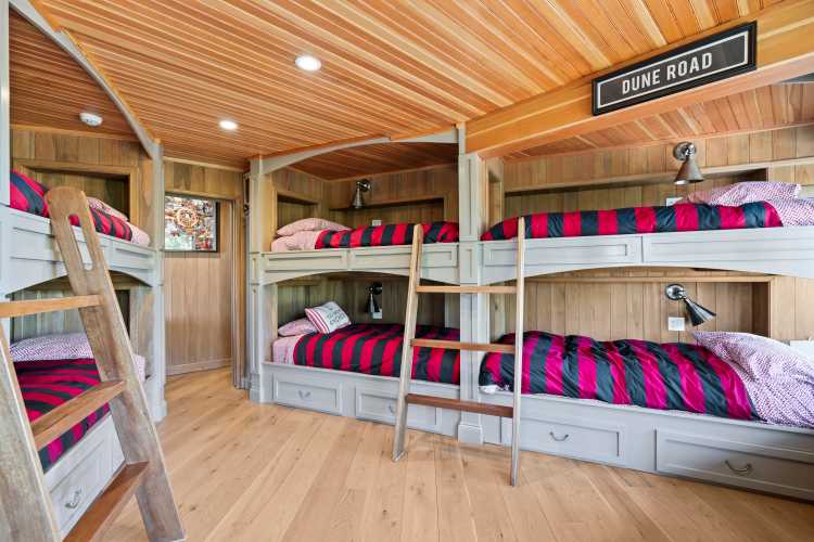 With seven bedrooms and five-and-a-half bathrooms, there is space for plenty of visitors. Among the guest rooms, three bunk rooms feel like spacious, high-end sleeping quarters on a ship, featuring at least four bunks or more in each of the rooms.