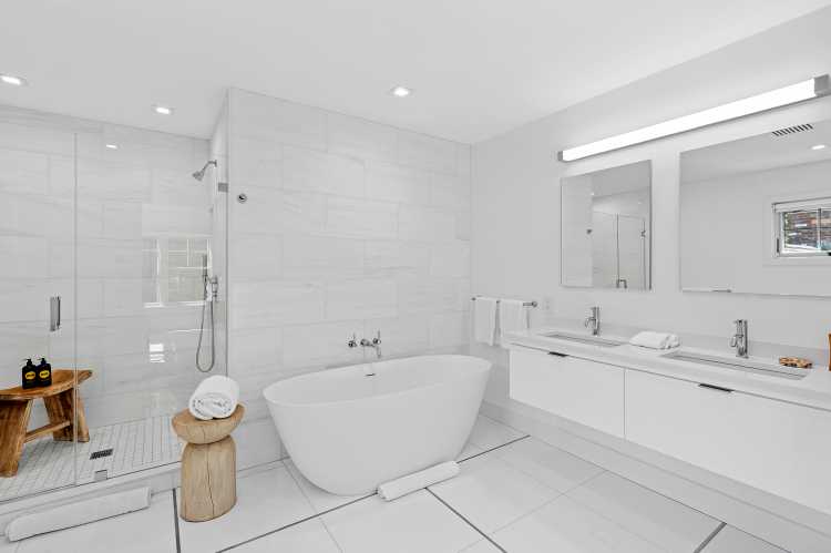 Just completed, the 3,000-square-foot house offers six bedrooms, five full bathrooms and one half bath, all in a light-filled, modern space. The bright and beachy aesthetic features contemporary finishes, clean lines and a strong attention to detail for which Black Dog Construction has become known.