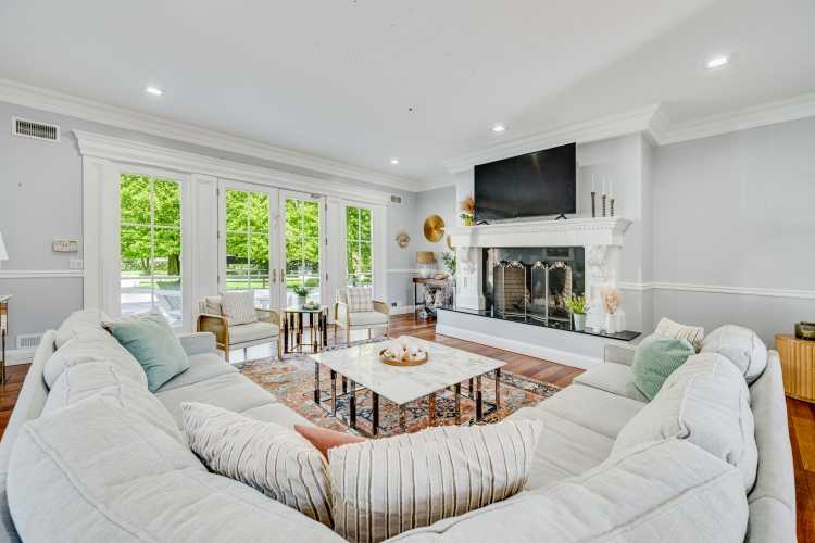 The listing continues, “The bright living room opens directly to the rear patio, creating a seamless connection to the grounds and pool setting-ideal for relaxed afternoons and lively evenings with friends and loved ones,” the listing continues.
