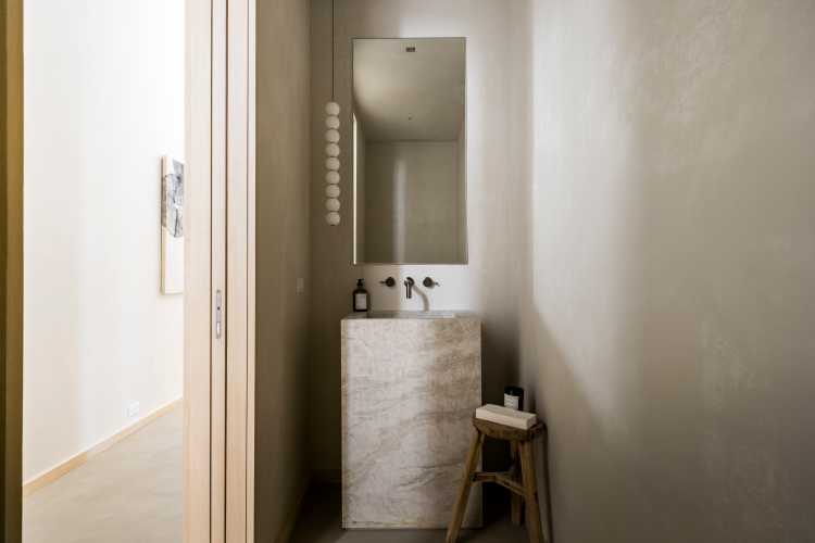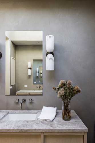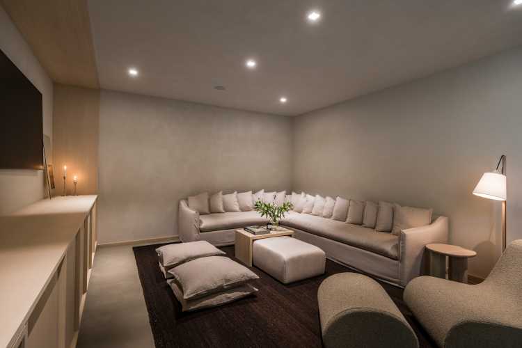 “Sunnyside was conceived as an elevated sanctuary — a whimsical nod to a treehouse that matured into the definitive modern retreat,” Varischetti says. “It is a masterclass in ‘homespitality,’ striking a seductive balance between the precision of a luxury boutique hotel and the soul of a private estate. The architecture is designed to breathe with the occasion, pivoting effortlessly from a grand gala for 50 to an intimate evening for five,” he continues. “But the true magic lies in the atmosphere: by day, the light performs a silent, rhythmic dance across the surfaces; by night, the house exhales, settling into a moody, immersive glow that feels like a velvet embrace.”