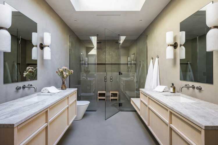 “Refined details and stunning finishes like Phylrich bathroom fixtures, Toto toilets, Cortizo windows, micro-topping concrete floors and datum walls are found throughout,” the listing description reads.